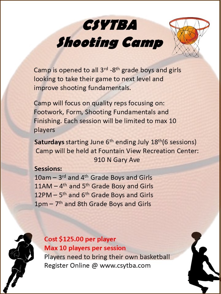 Camp is opened to all 3rd -8th grade boys and girls looking to take their game to next level and improve shooting fundamentals.
