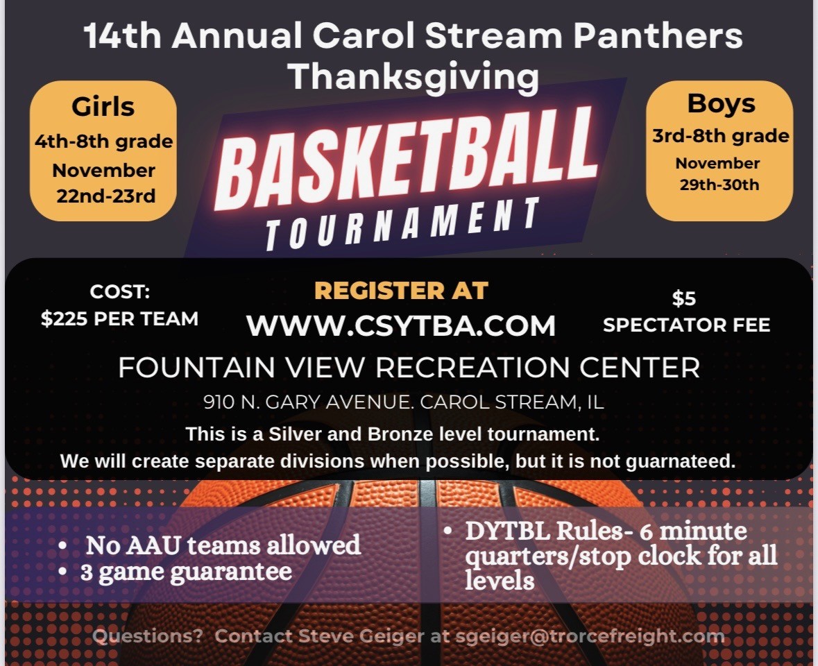 The CSYTBA will be hosting their Annual Thanksgiving Tournament.